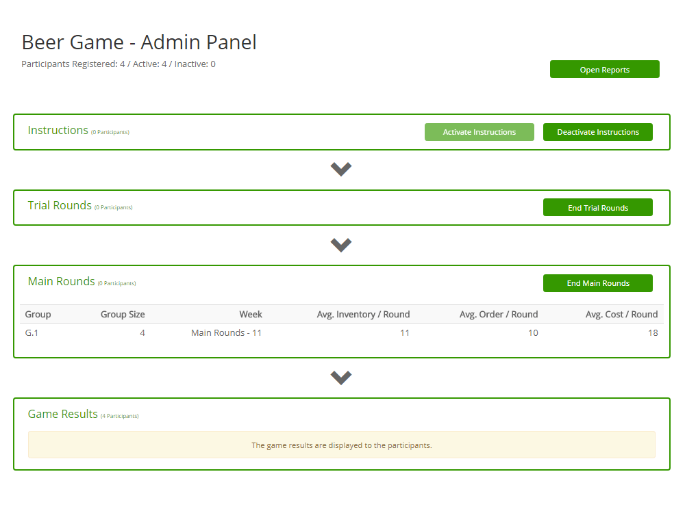 “Over the last 10 years I have taught the "Beer Game" supply chain simulation to numerous groups of graduate students and executives. For some of those games I used the "manual" game, when the students have to physically "move" the product and do the bookkeeping, for others I tried several software products available in the market. While the manual game provides ultimate engagement, it is also more stressful for students, and harder to execute by the faculty - a software therefore is a desired solution. My experience with some of the products available, however, has been sometimes negative, and I was therefore looking for a "clean" and simple implementation that just works.